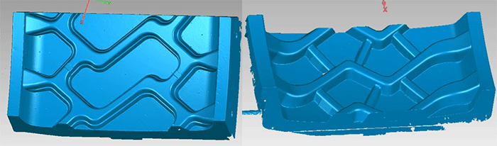質(zhì)量檢測(cè)——用三維掃描儀對(duì)輪胎模具進(jìn)行掃描,然后將掃描數(shù)據(jù)和CAD模型同時(shí)導(dǎo)入Geomagic Control軟件,得到3D比較的色差彩圖,通過(guò)偏差分析,對(duì)輪胎模具進(jìn)行精確的質(zhì)量評(píng)估。